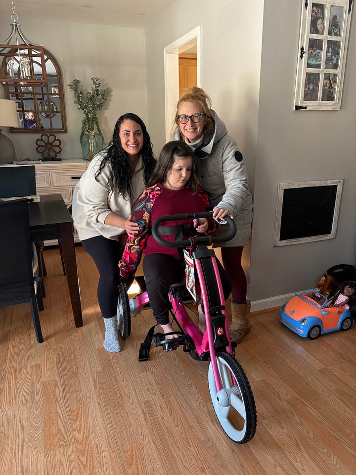 This week brought me (and Julie) back out on deliveries. We went to Glenville and Delmar to deliver bikes — a bit of hope and spring in the middle of what has been a frigid winter. At Isaiah’s house, the cold weather didn’t stop him. He promptly got his coat and helmet and hopped on his new bike, with his sister and mother cheering him on. At Harper’s house, the weather prevented her from getting out just yet, but she was so excited to check out and sit on her brand new pink Rifton bike.
